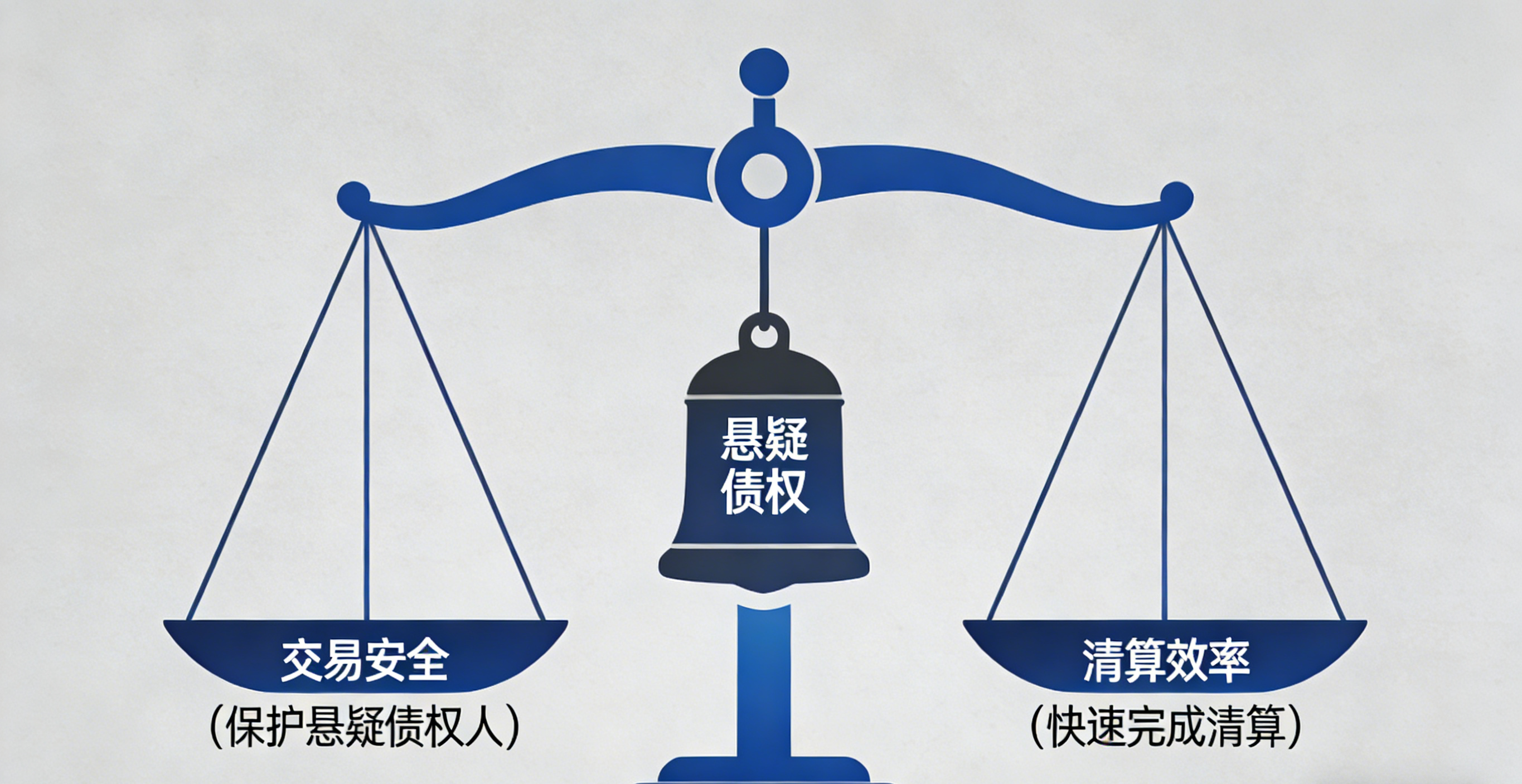 对于①②两种情形,争议不大。但对于情形③悬疑债权,在清算中常被有意或无意地排斥或忽略,对它的处置经常陷入两难的困境,这其实是法律在交易安全和效率这两种价值间取舍的问题。司法实践中存在不同的观点。