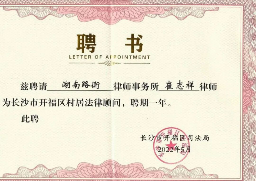 这一获聘标志着本所正式成为开福区基层法律服务网络的重要一员,将承担起为辖区内社区(村)提供专业法律服务的职责使命。