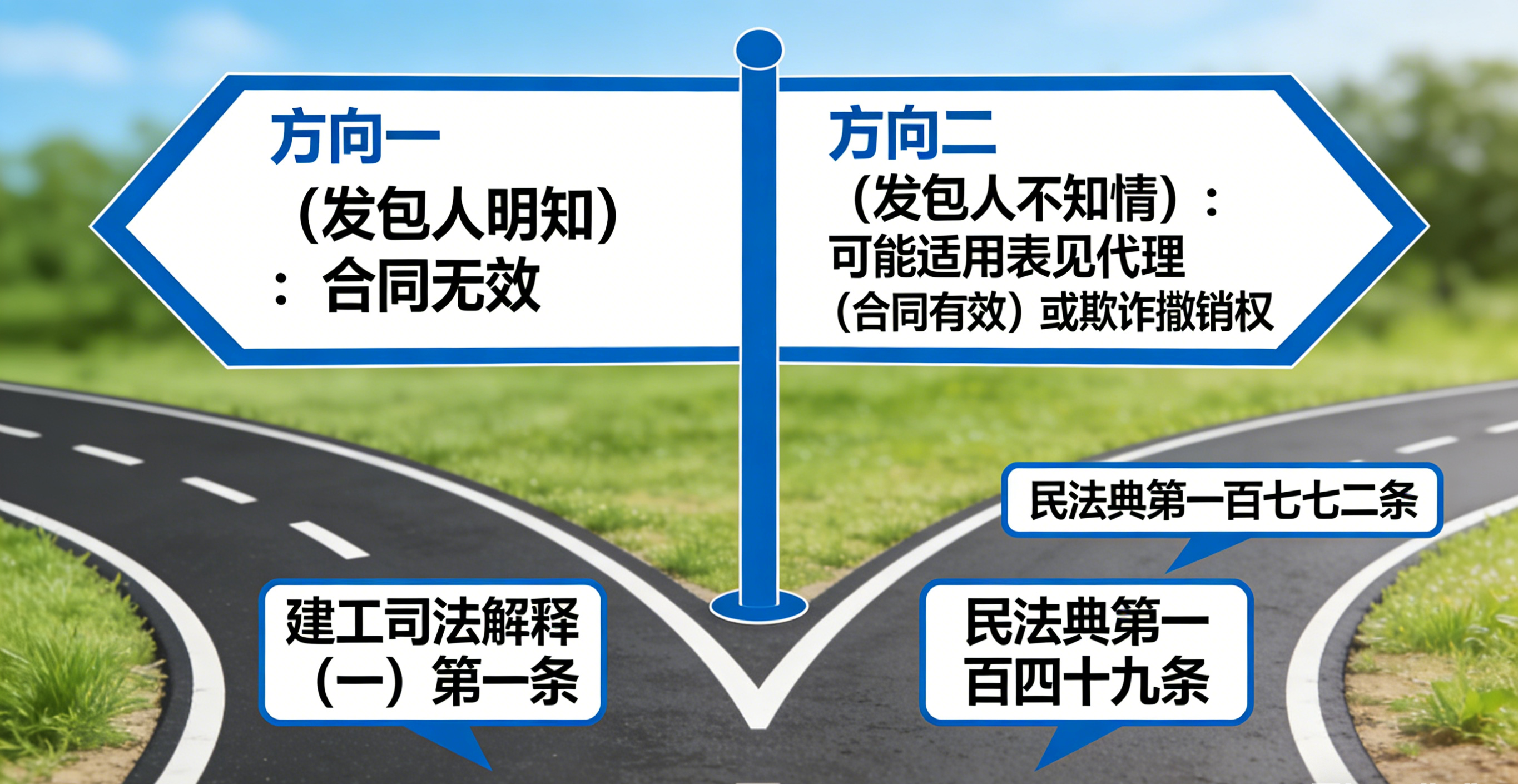 若发包人不知情,可类推适用《民法典》第一百七十二条表见代理规定,认定合同有效。同时,依据《民法典》第一百四十九条,若发包人受欺诈签订合同,则享有撤销权。