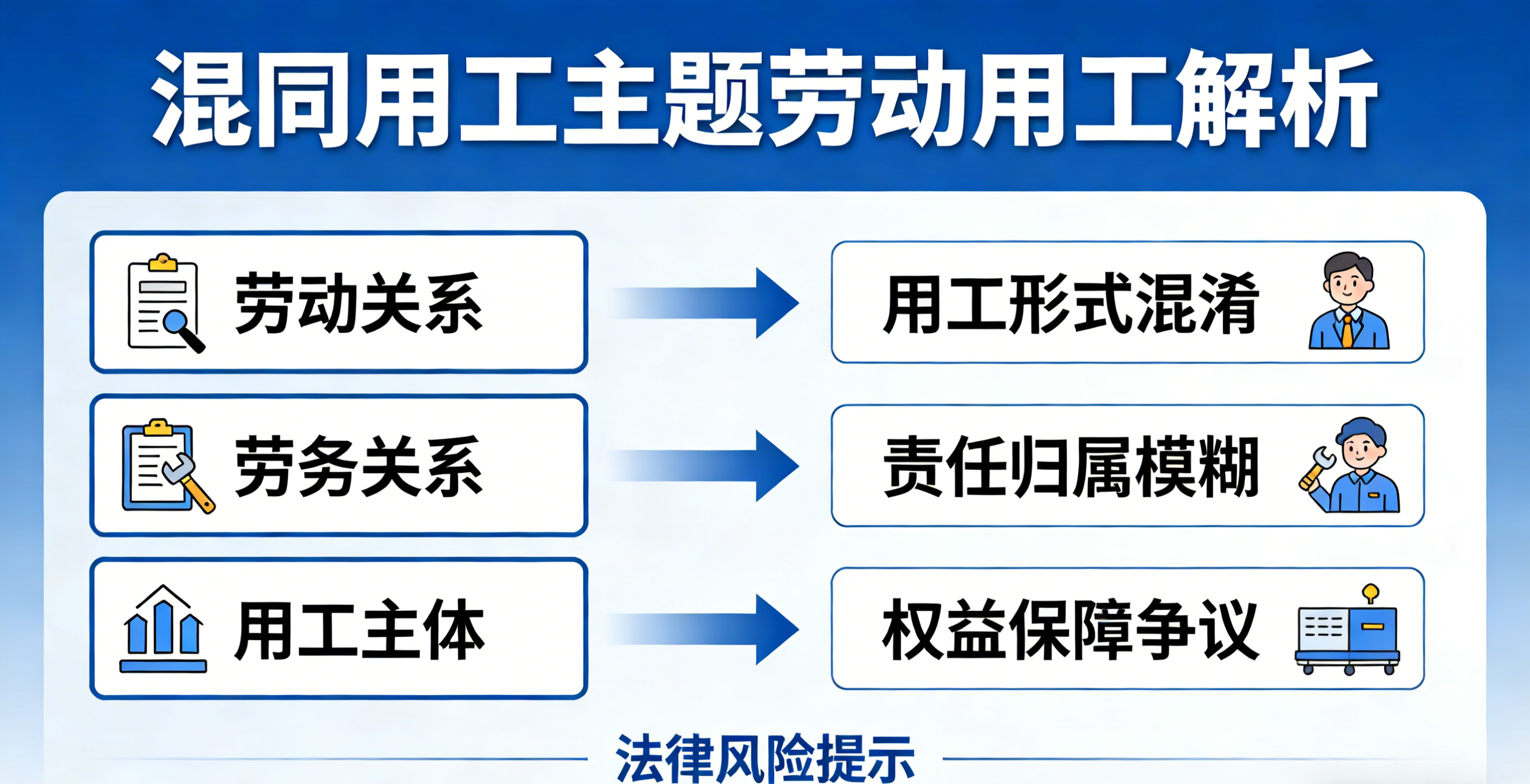 在企业集团化运营中,多家关联公司共享办公场所、管理人员与员工队伍的情形并不少见。这种“两块牌子,一套人马”的用工模式,虽在短期内降低了管理成本,却模糊了劳动关系的基本边界。劳动者同时接受多家公司管理,工资发放、社保缴纳、考勤记录由不同主体分别完成,一旦发生劳动争议,各关联公司往往相互推诿,导致用工主体责任难以落实。本文从法律界定、司法认定标准、典型风险场景及合规管控路径四个维度,对混同用工问题展开系统分析。
