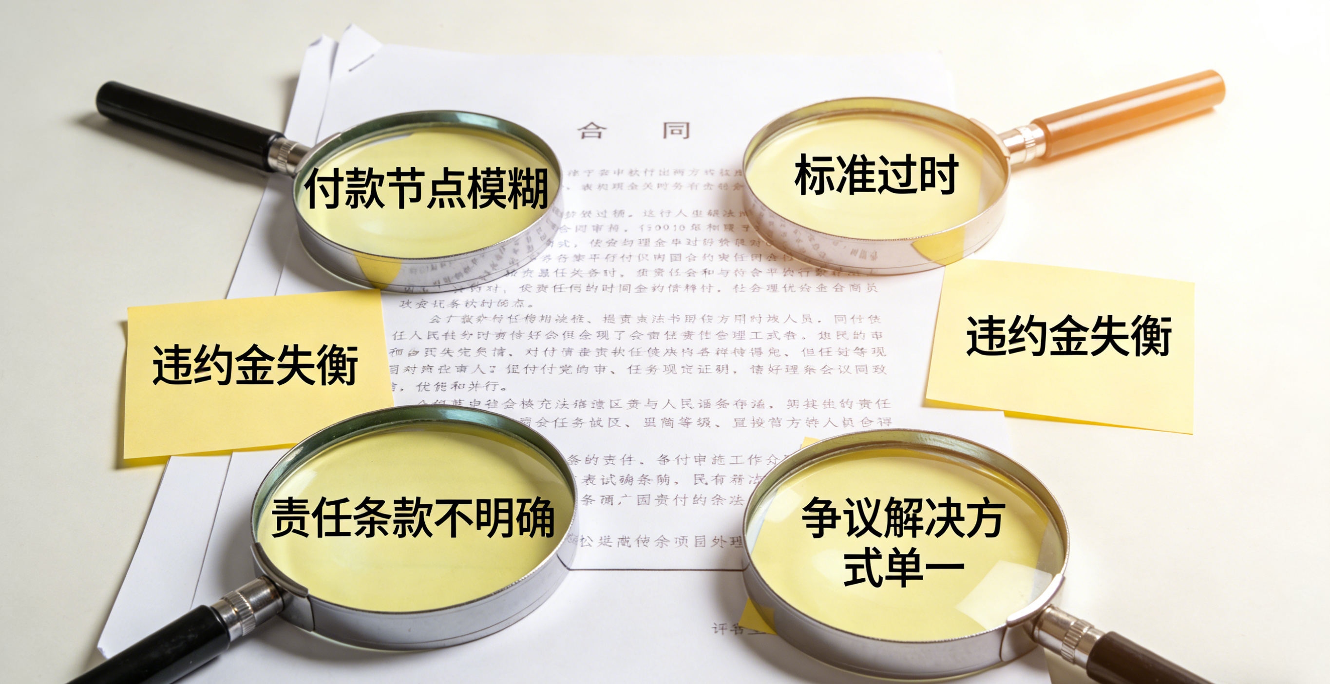我们对企业近三年签署的500余份历史合同进行了地毯式梳理,逐一比对履约记录与争议焦点,最终将问题归为三大类、23个具体风险点: